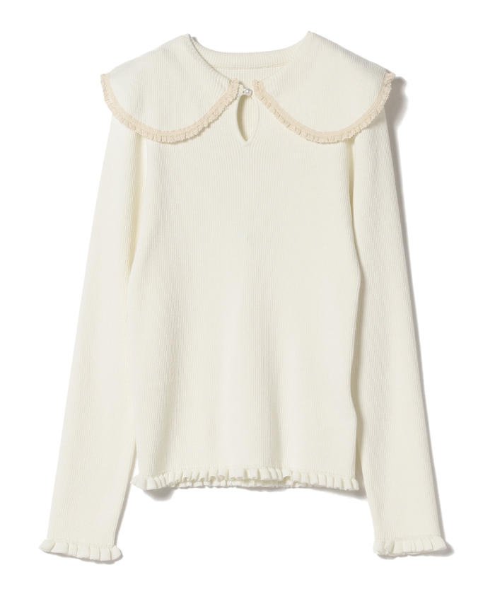 フェミニンな雰囲気漂うアイテム 大きな襟が目を惹くフェミニンな印象のニットです。襟と袖口にレースをプラスし、さりげないデザインがポイント。 厚手すぎない程よい素材感が体にフィットし、着心地も抜群です。 今年は、ニットやスウェットの下に重ねて、襟や袖を出したレイヤードスタイルがおすすめ♪